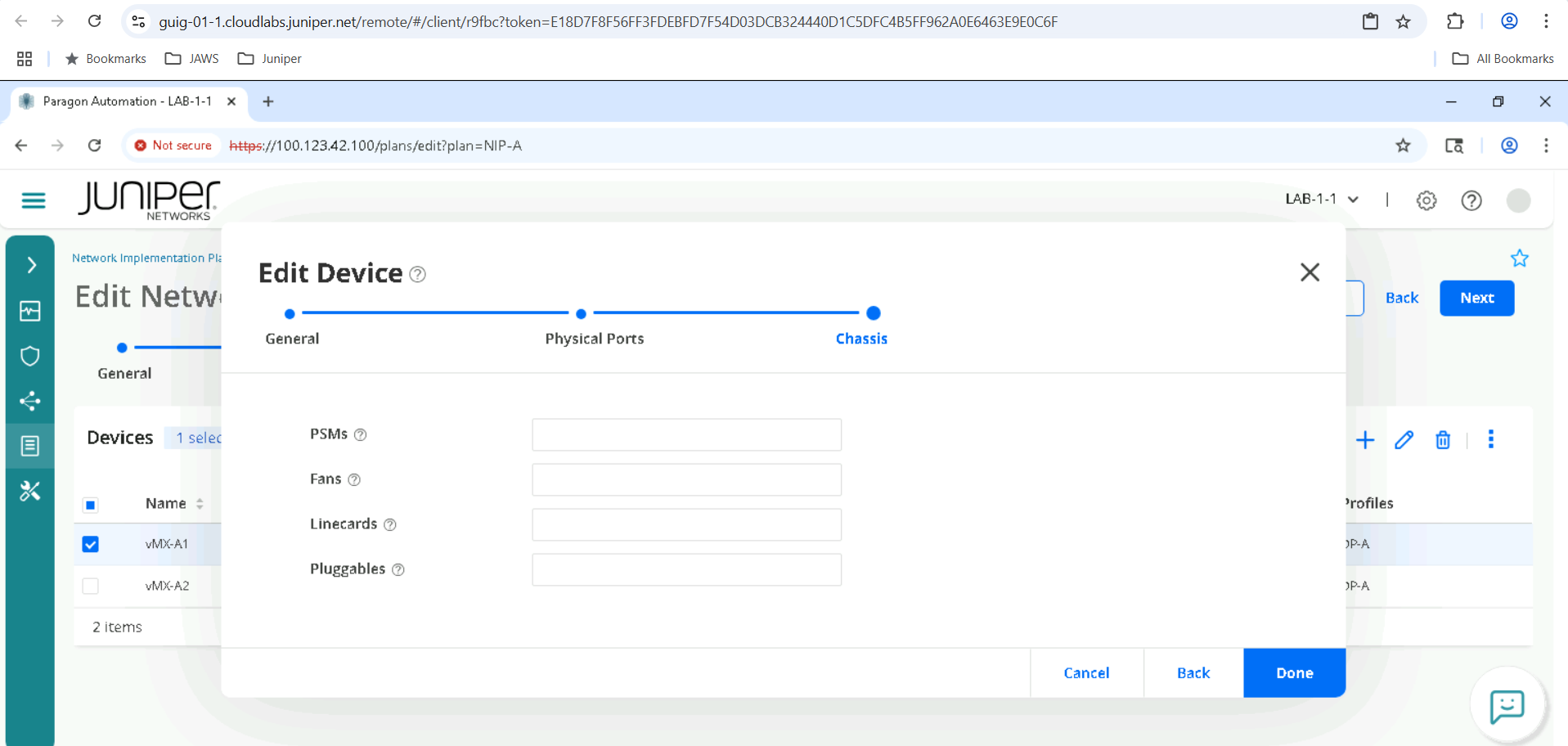 Make sure to select the correct device as per set allocated , for example for SETA , select device vMX-A1 , for SETB vMX-B1 and so on.