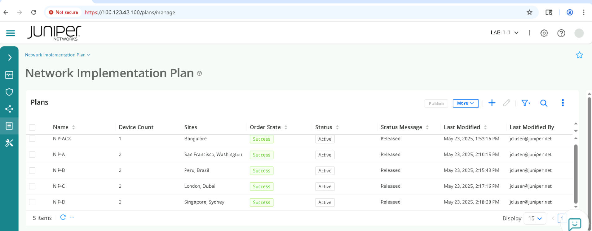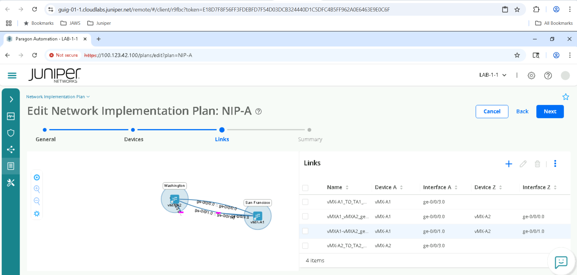 The objective of this part is to view how we build a intent plan, add devices, Physical interfaces and Links to a Plan. We will not be committing any changes , but getting a fair idea of how to do Network Planning for Onboarding use case.
