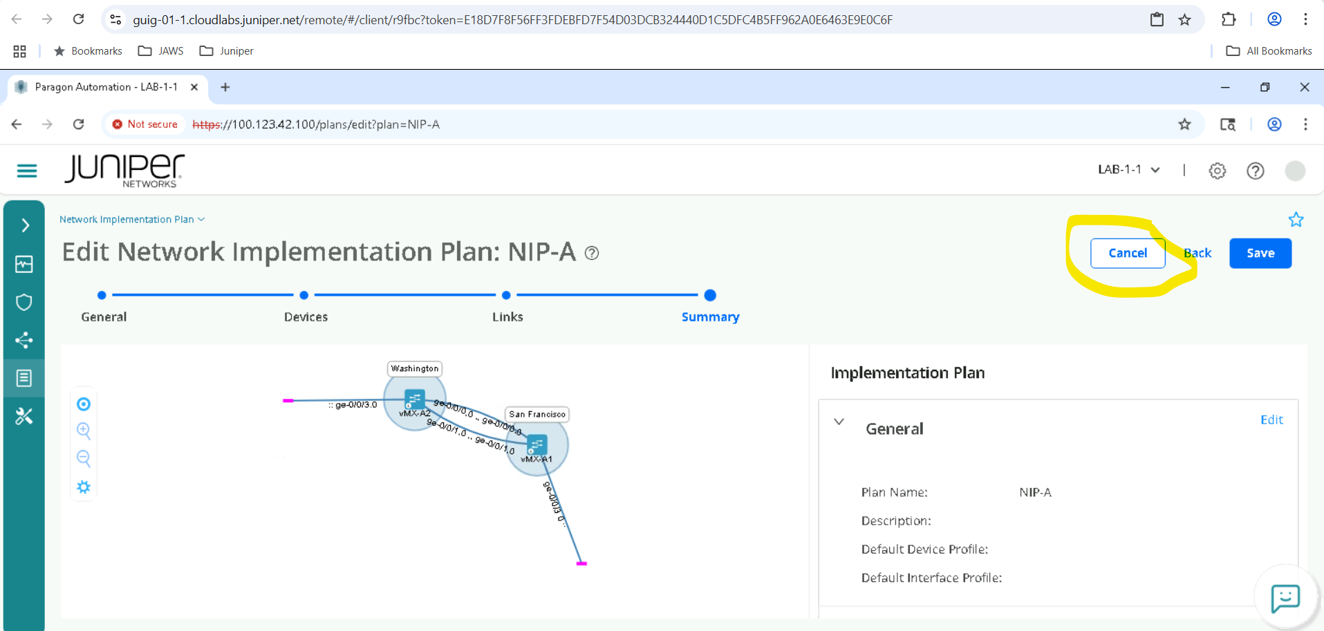 View the already constructed Network Implementation Plan (Please don’t make changes as it will impact the Lab)