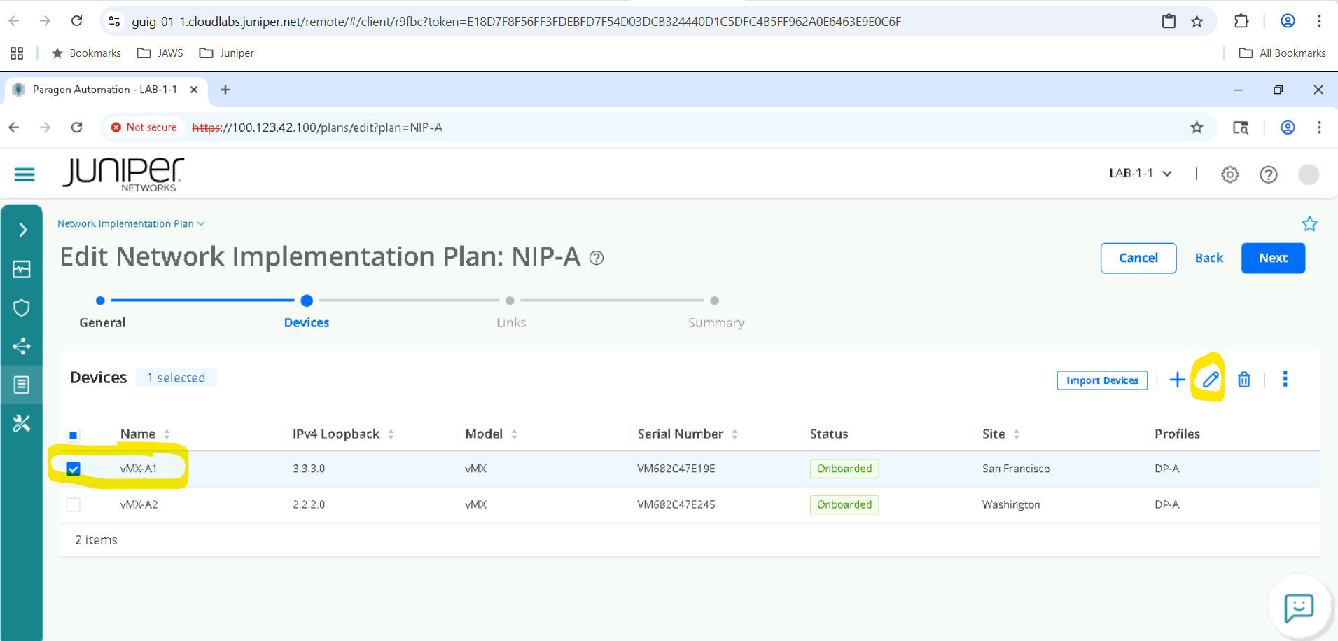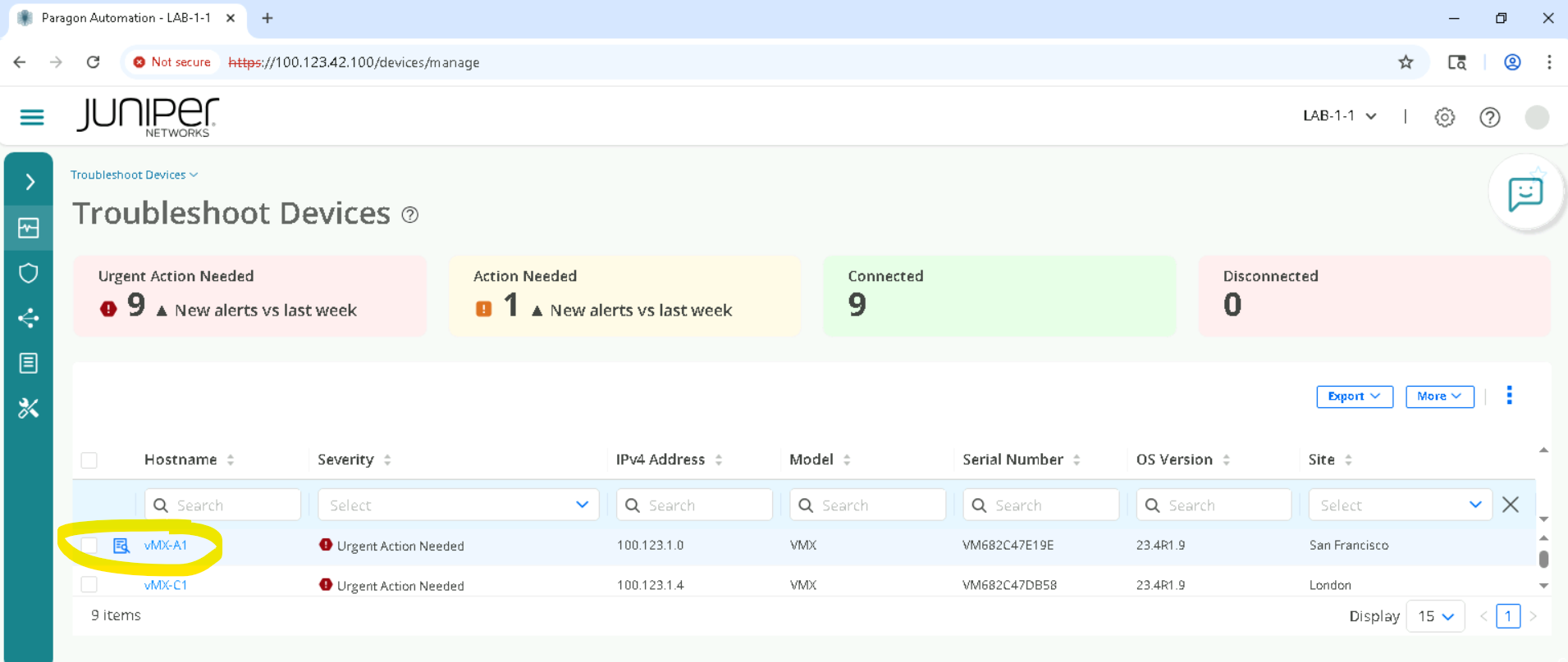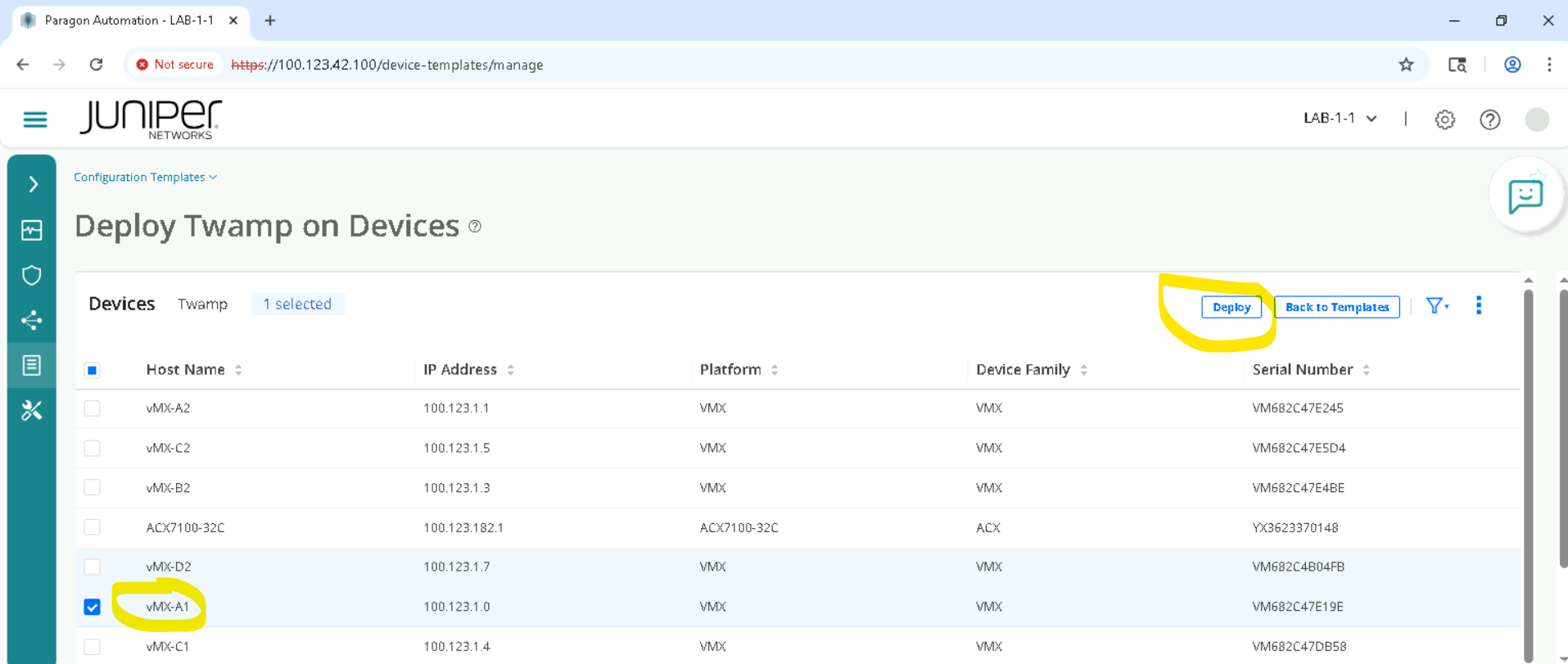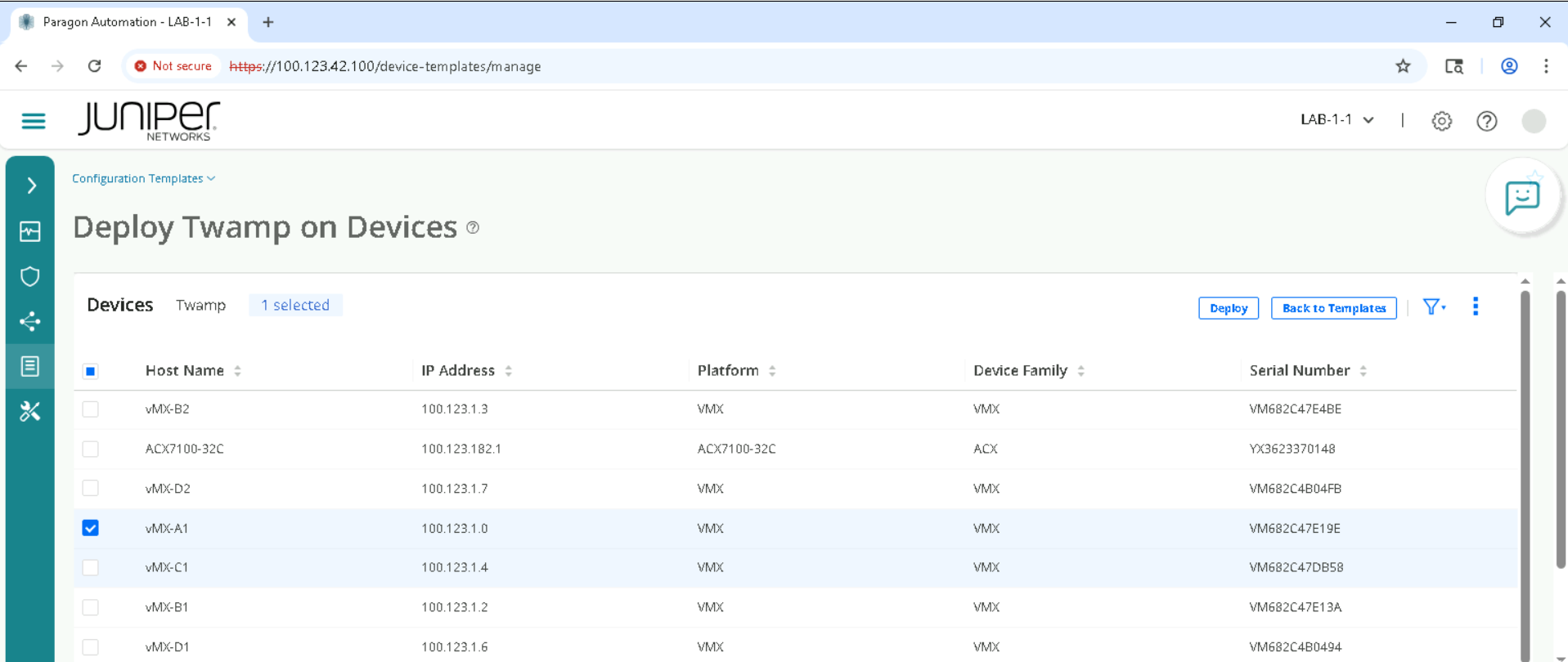 Click on the device depending on the SET allocated for example SETA will have vMX-A1, vMX-A2 .