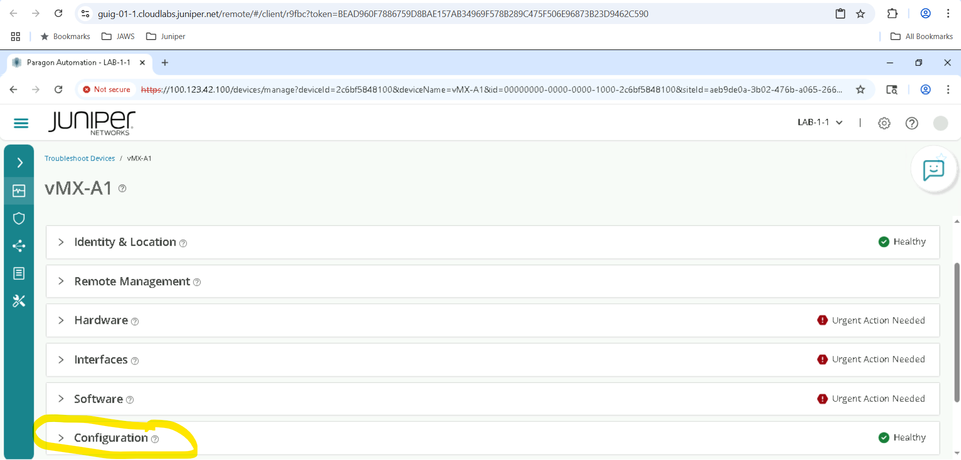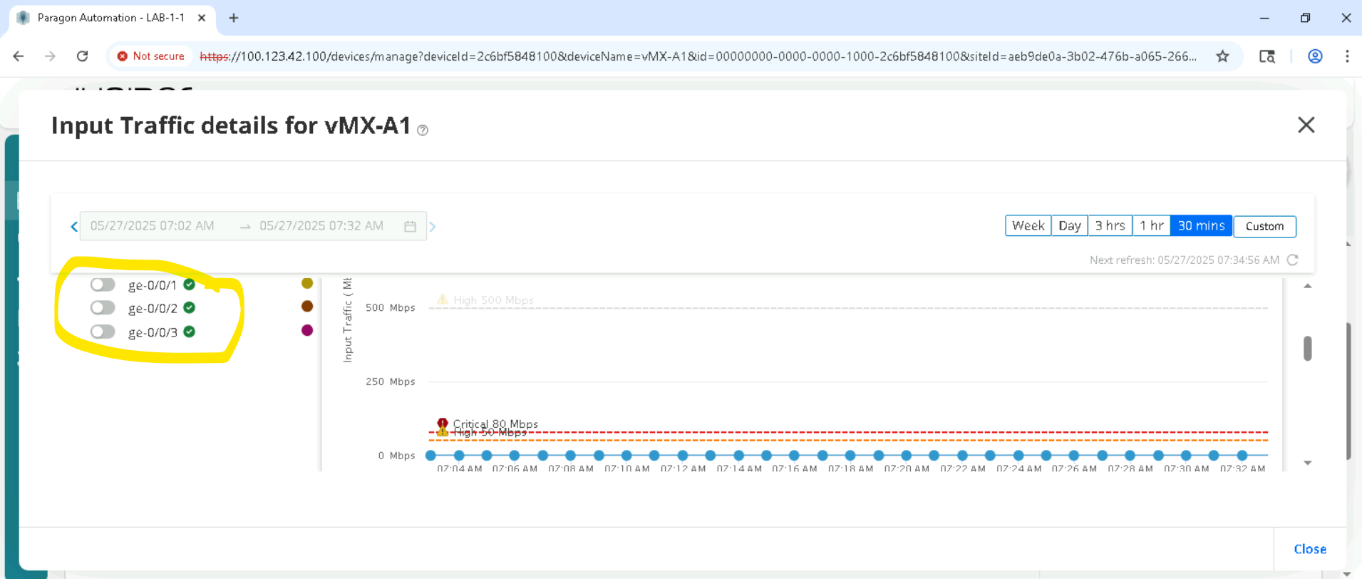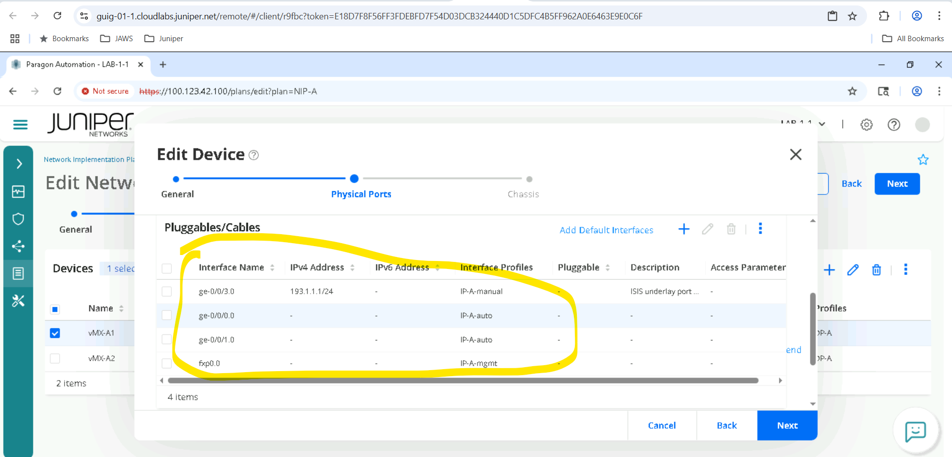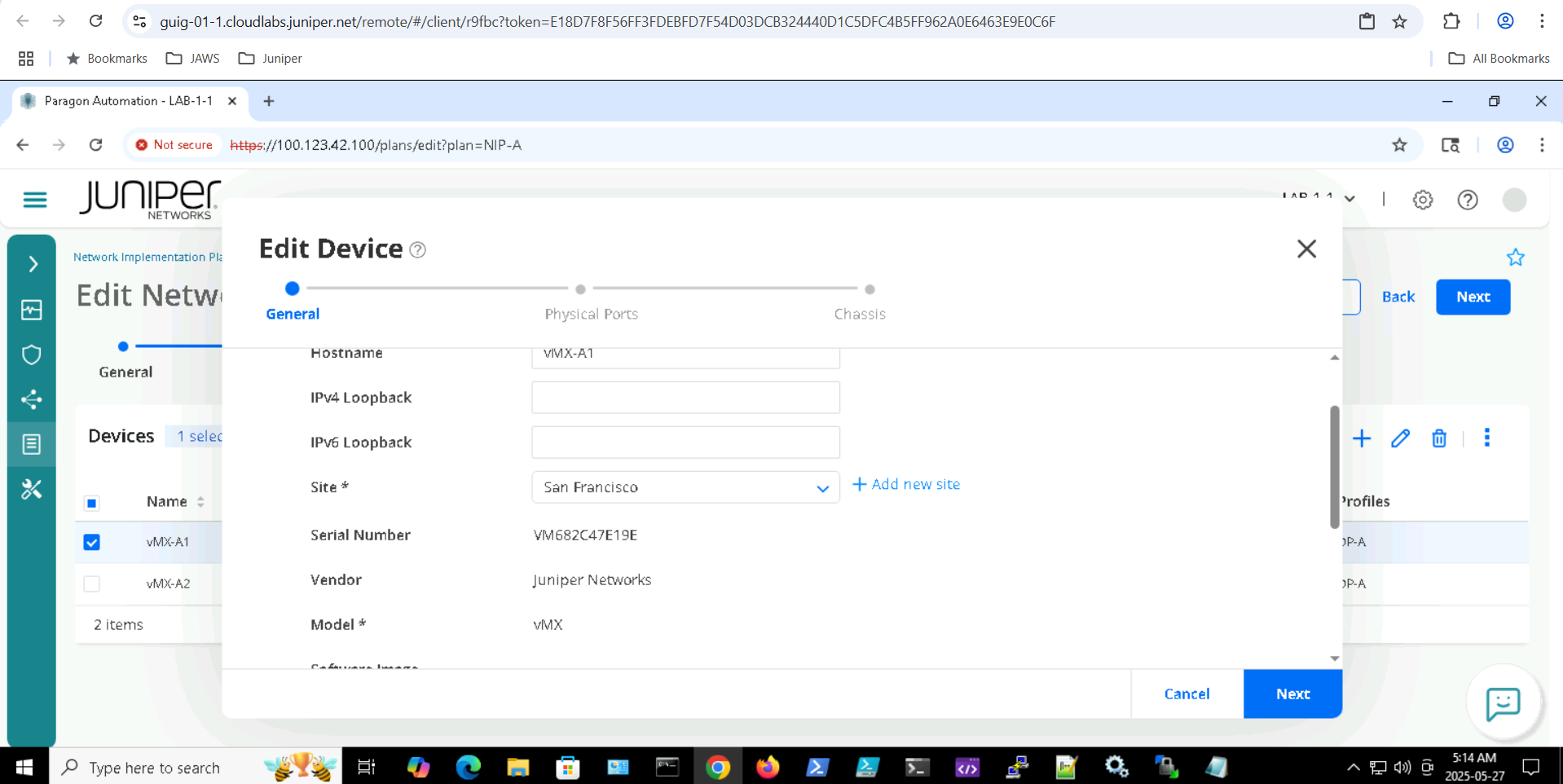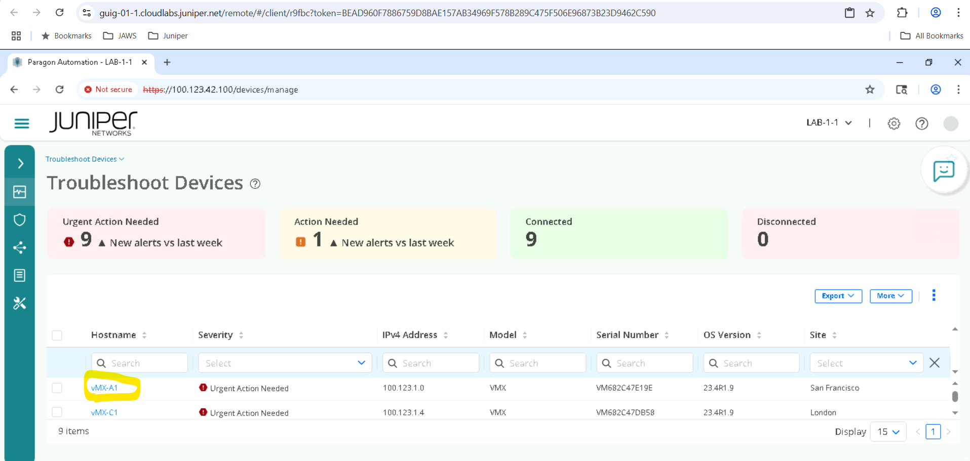 Click on the device depending on the SET allocated for example SETA will have vMX-A1, vMX-A2 .