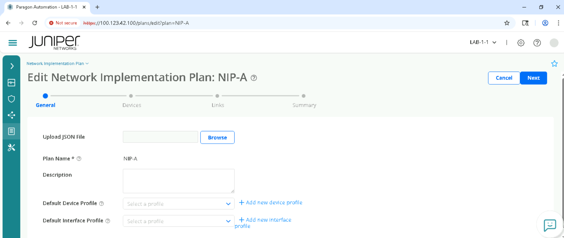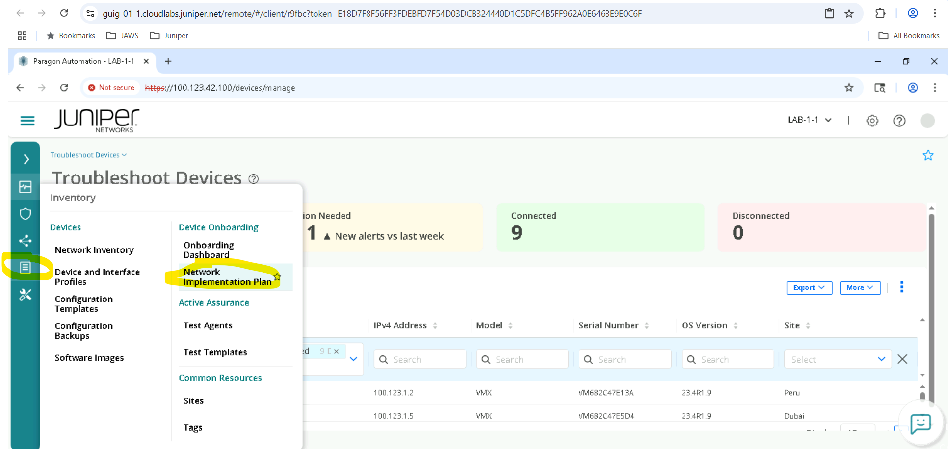 Navigate to Inventory > Network Implementation Plan