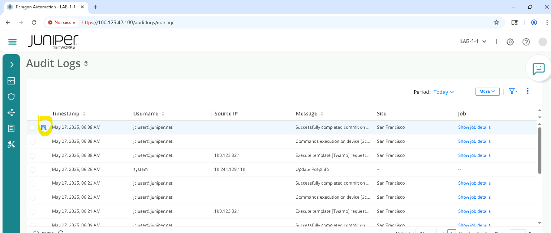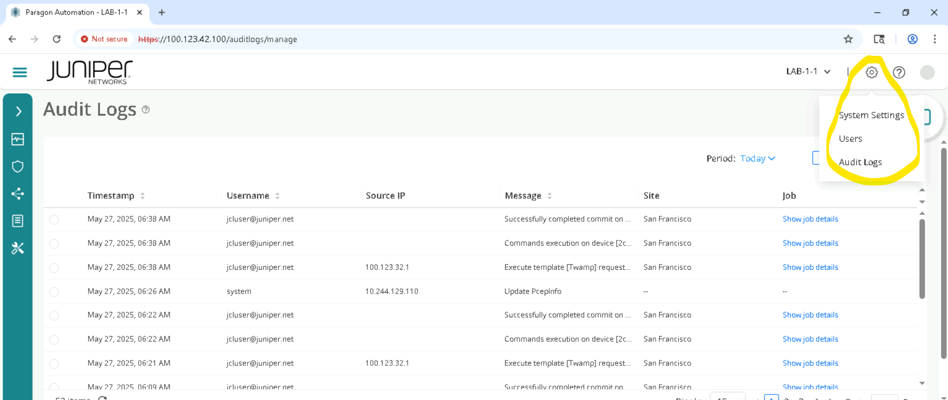 Open Chrome, and navigate to https://100.123.42.100, you should see the login page to Juniper Routing Director GUI