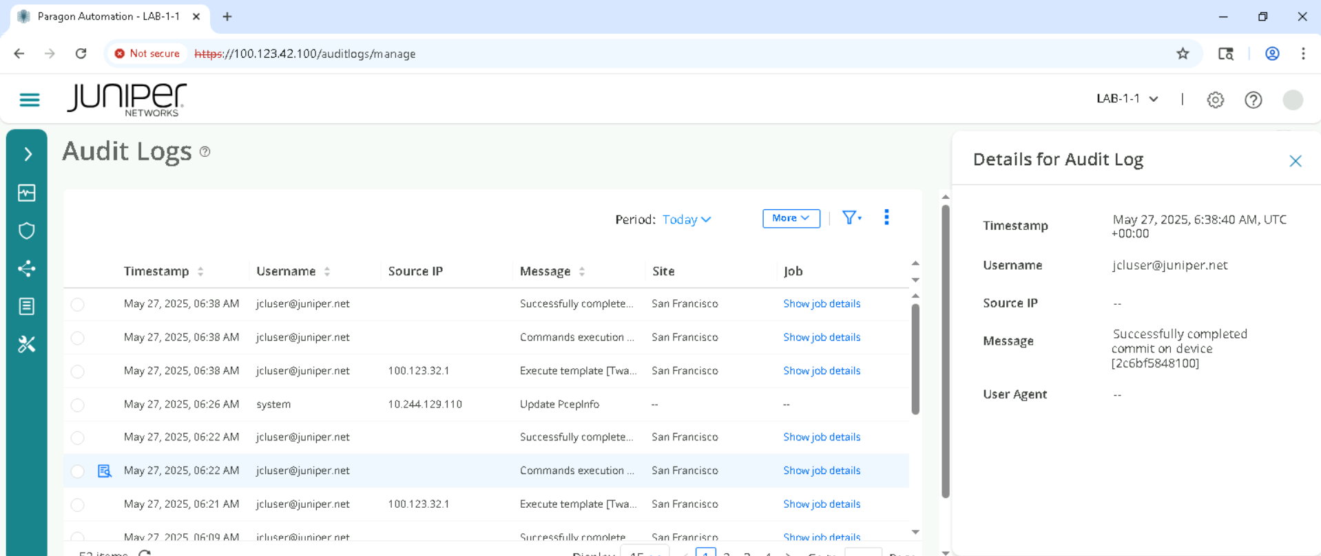 Username - jcluser@juniper.net