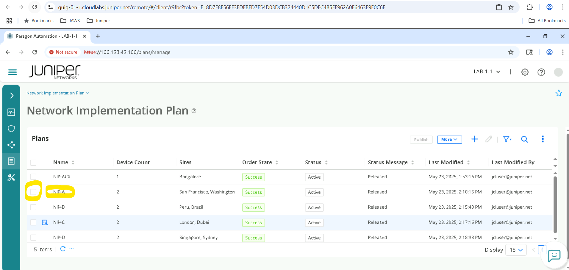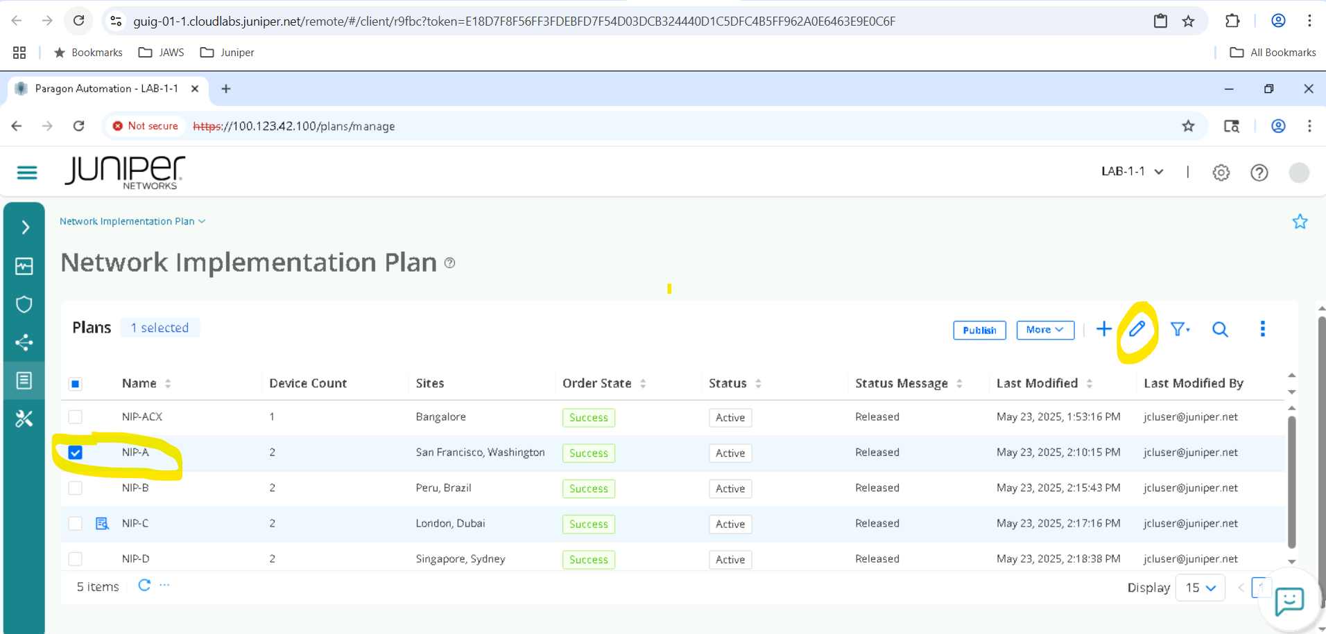 Select the appropriate Network Implementation Plan (NIP-A for SET-A devices, NIP-B for SET-B and so on) and click on Edit . Note that we will not commit any changes but only view the NIP .