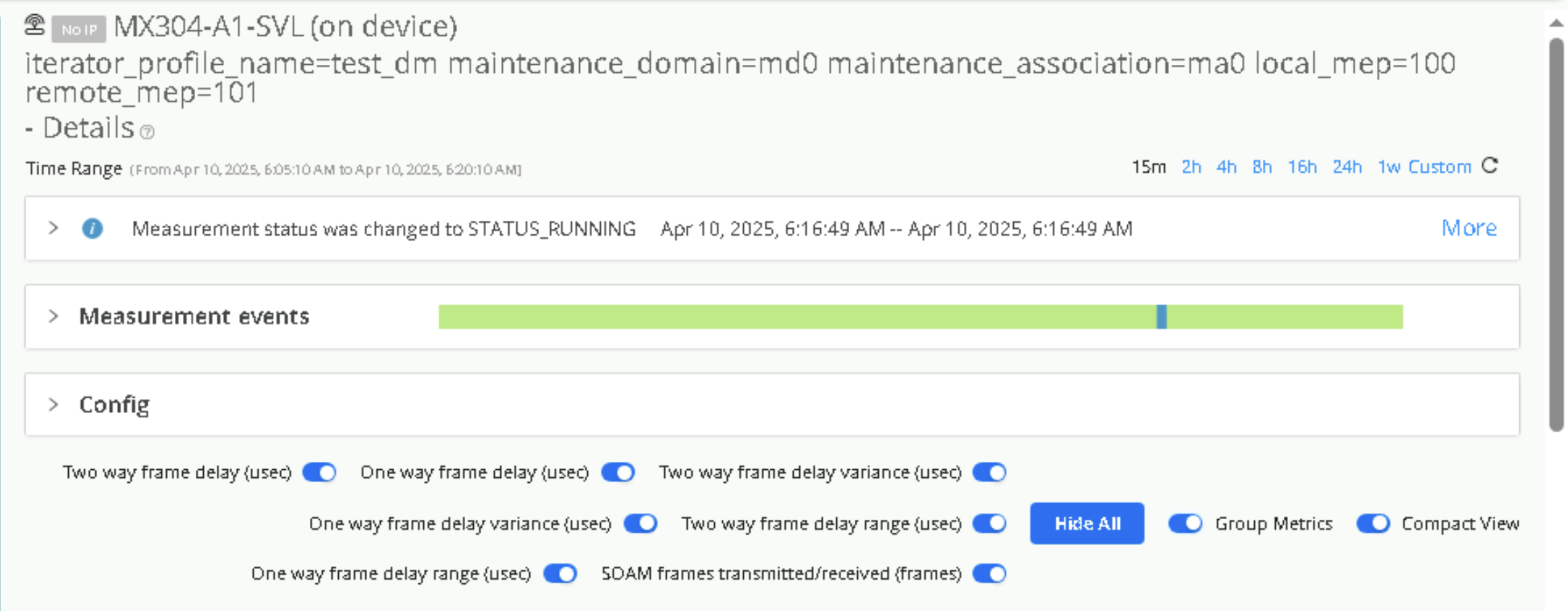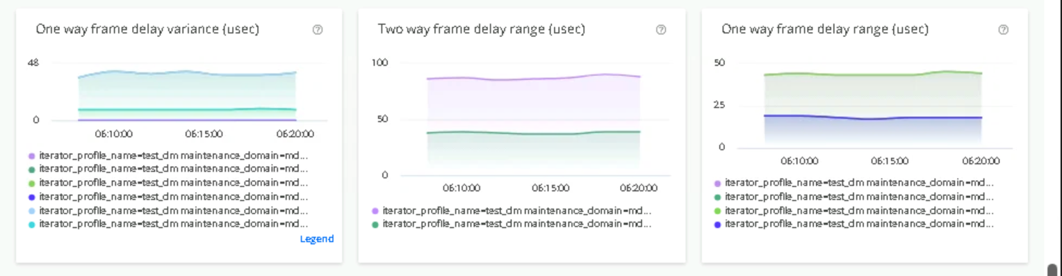 Click on Y1731 , there will be 2 streams, iterator_test_dm for delay measurement, iterator_test_slm for synthetic loss measurement. click each individually to view KPI’s