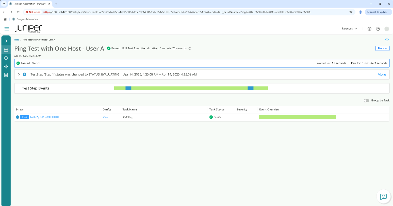 Go to Tests page to check the Test Status. Click on the latest Test run, and then click on the relevant stream to view the results.