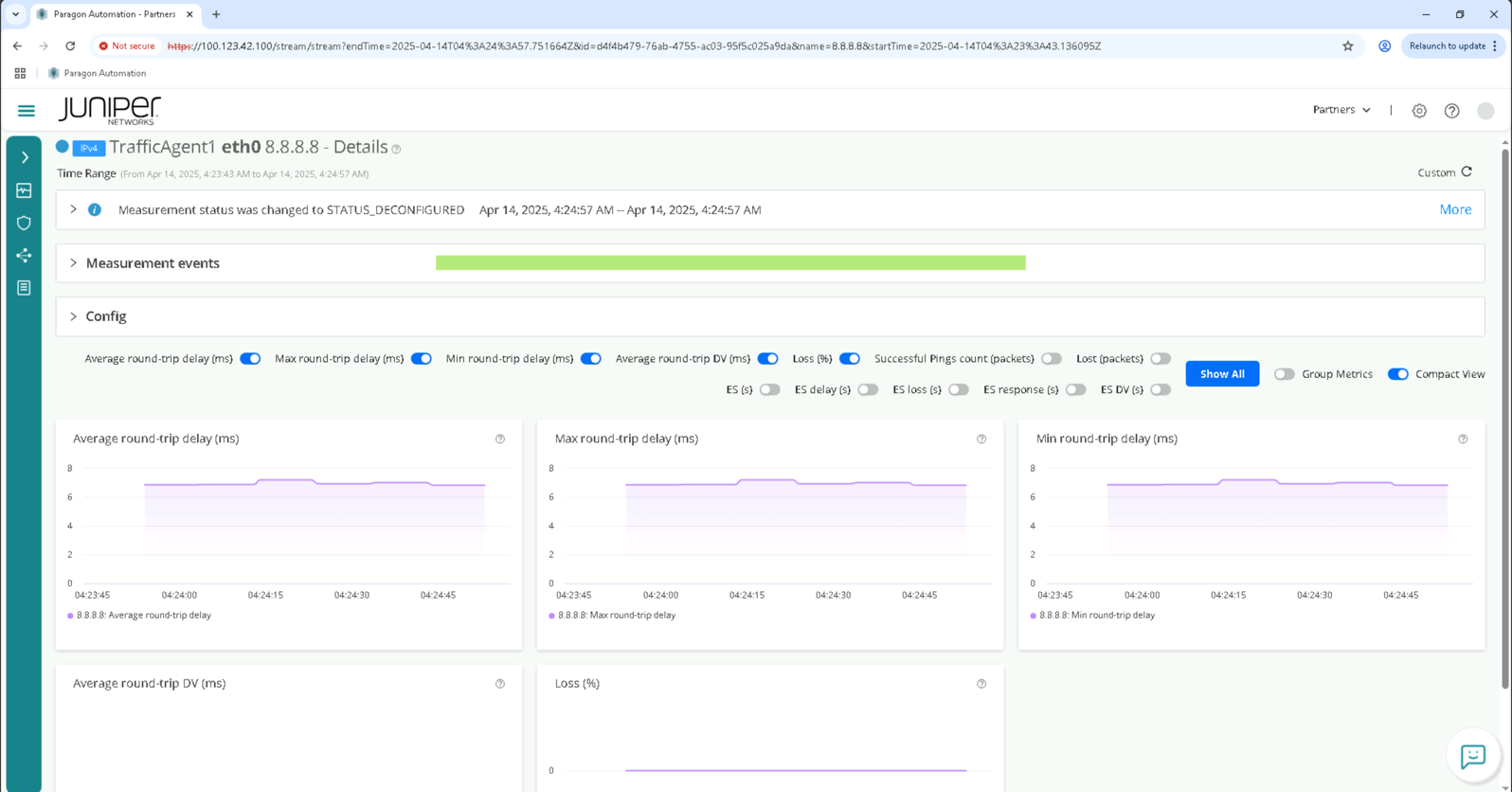 Comprehensive audit capabilities: Through strategically placed test agents, Routing Active Testing can audit thousands of endpoints simultaneously, providing detailed insights into network performance trends and problematic nodes. These Audits can catch issues related to control plane / data planes or misconfigurations of QOS policies or firewalls.