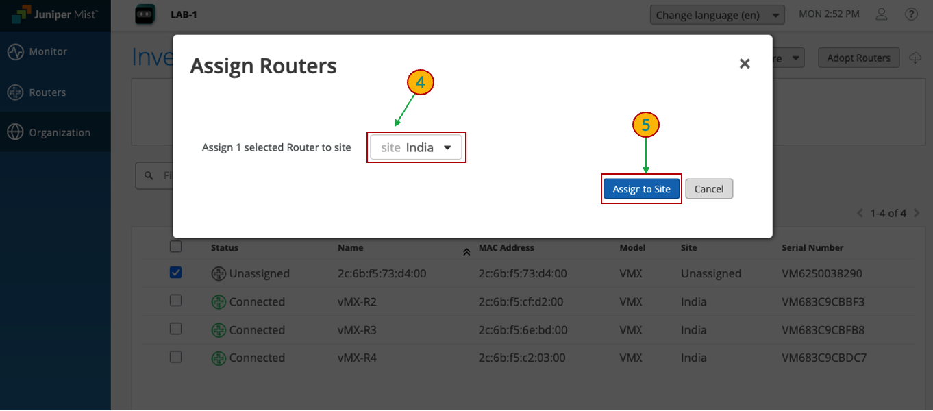 Select the Site to which the Router needs to be added, in this case it’s Site: India