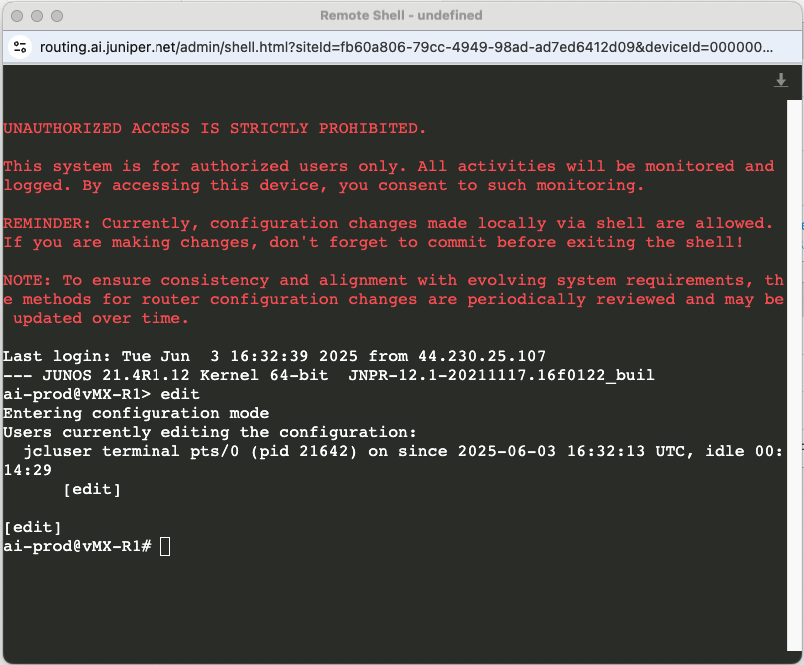 This lab is designed to provide hands-on experience with Juniper’s AI-driven Routing Assurance platform. You’ll begin with a brief overview of the solution, followed by a guided walkthrough of the user interface. Through practical exercises, you’ll explore key features and learn how to monitor, troubleshoot, and optimize network routing with real-time insights and automation.