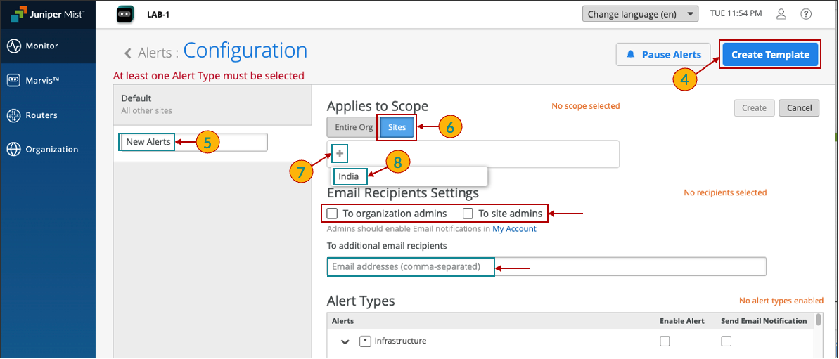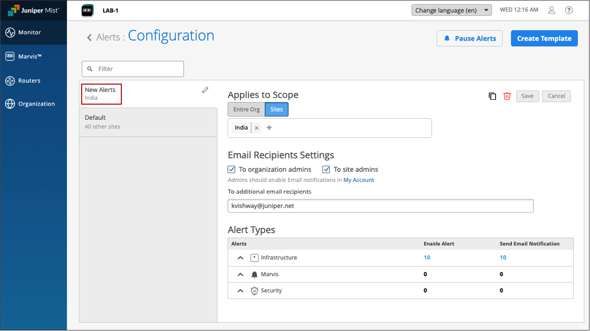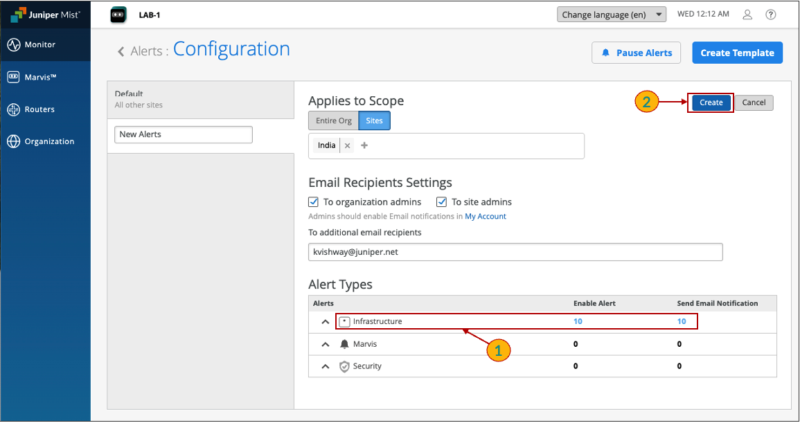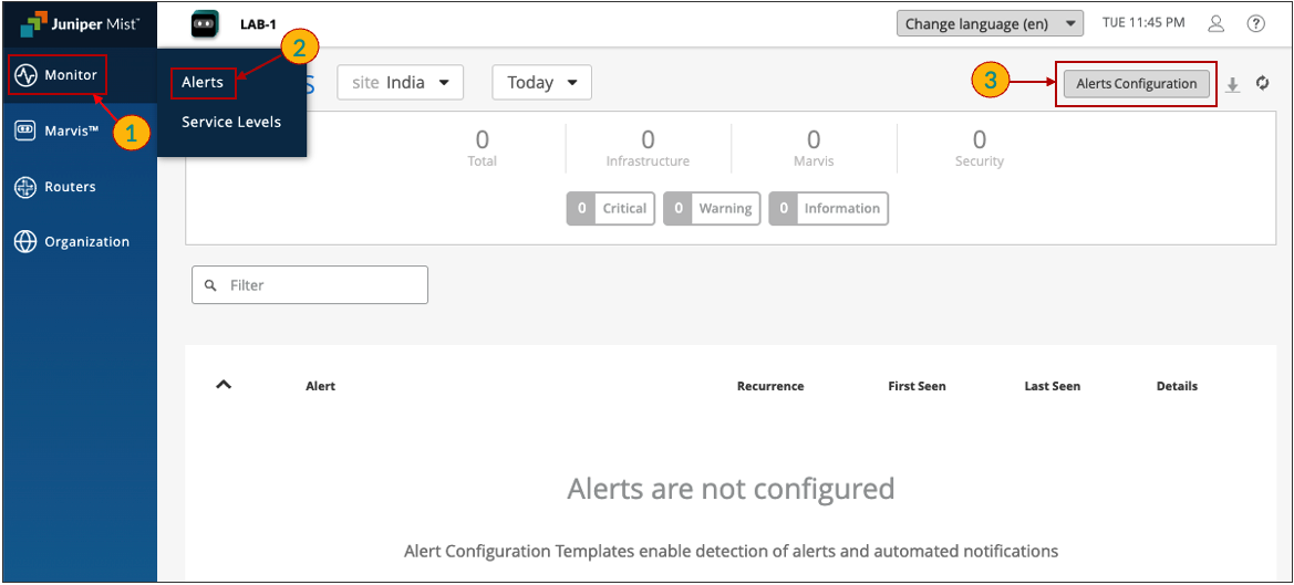 Navigate to Monitor section, click on Alerts > Alerts Configuration