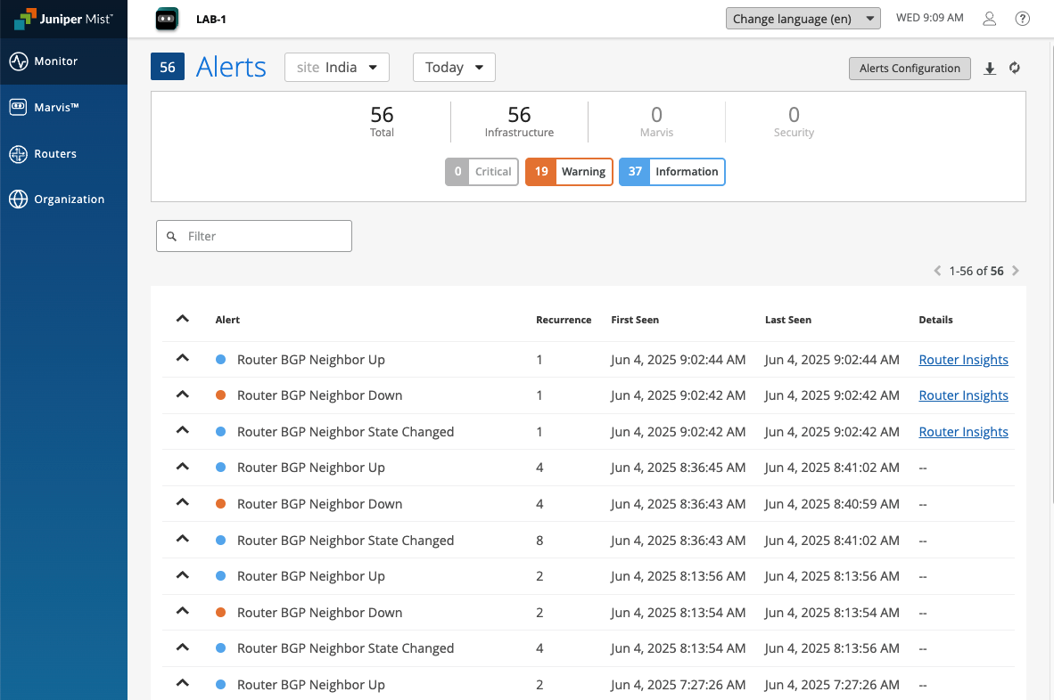 The Juniper Mist Routing Assurance (JRA) platform empowers you to achieve this through its AI-driven insights and intuitive user interface.