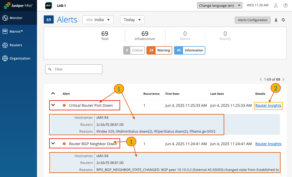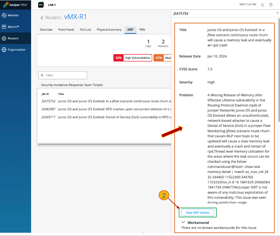 In this scenario, you’ll explore how to leverage Juniper Mist Routing Assurance (JRA) and its Router Insights to efficiently investigate and resolve network faults.