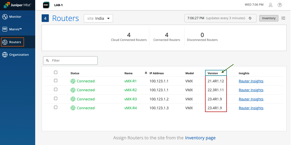 Go to Routers section: the page will show all the Routers, their Name, IP Address, Model, Version