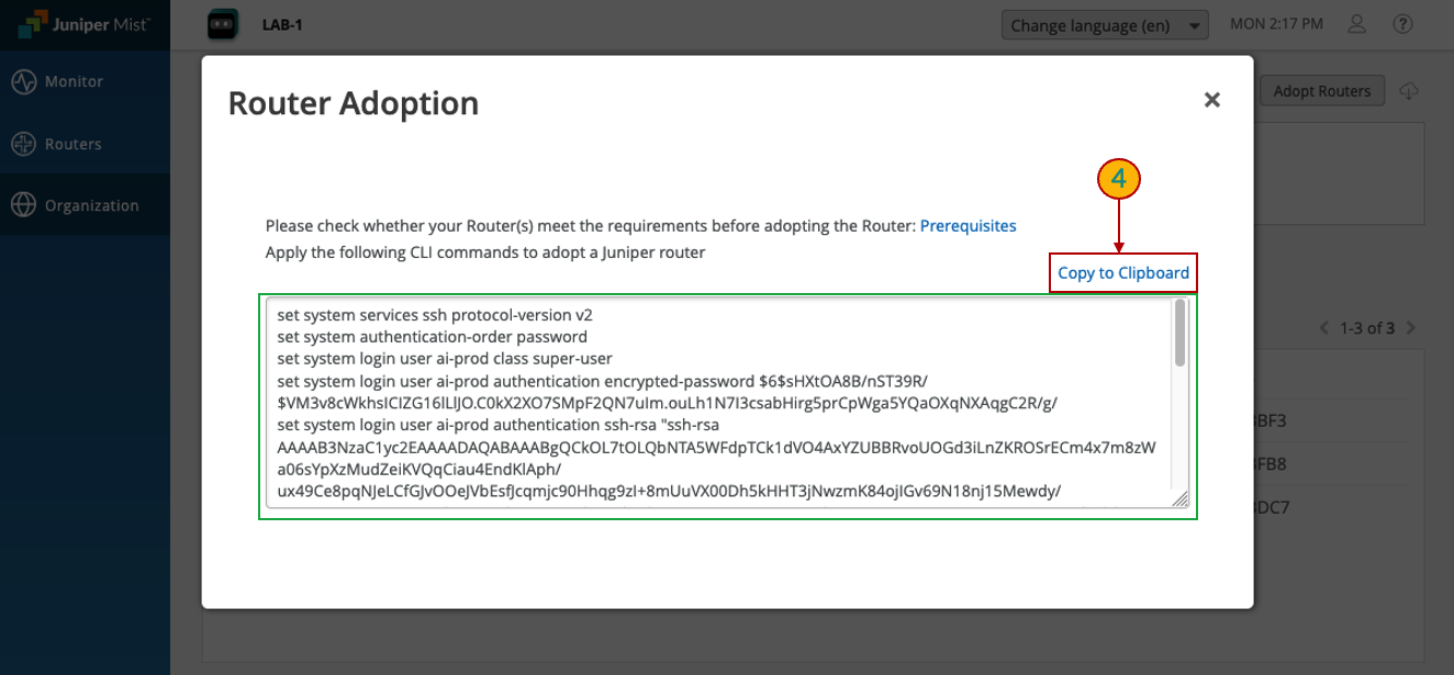 Click Copy to Clipboard option to copy the CLI commands, and then paste them into the router’s command-line interface to apply the configuration