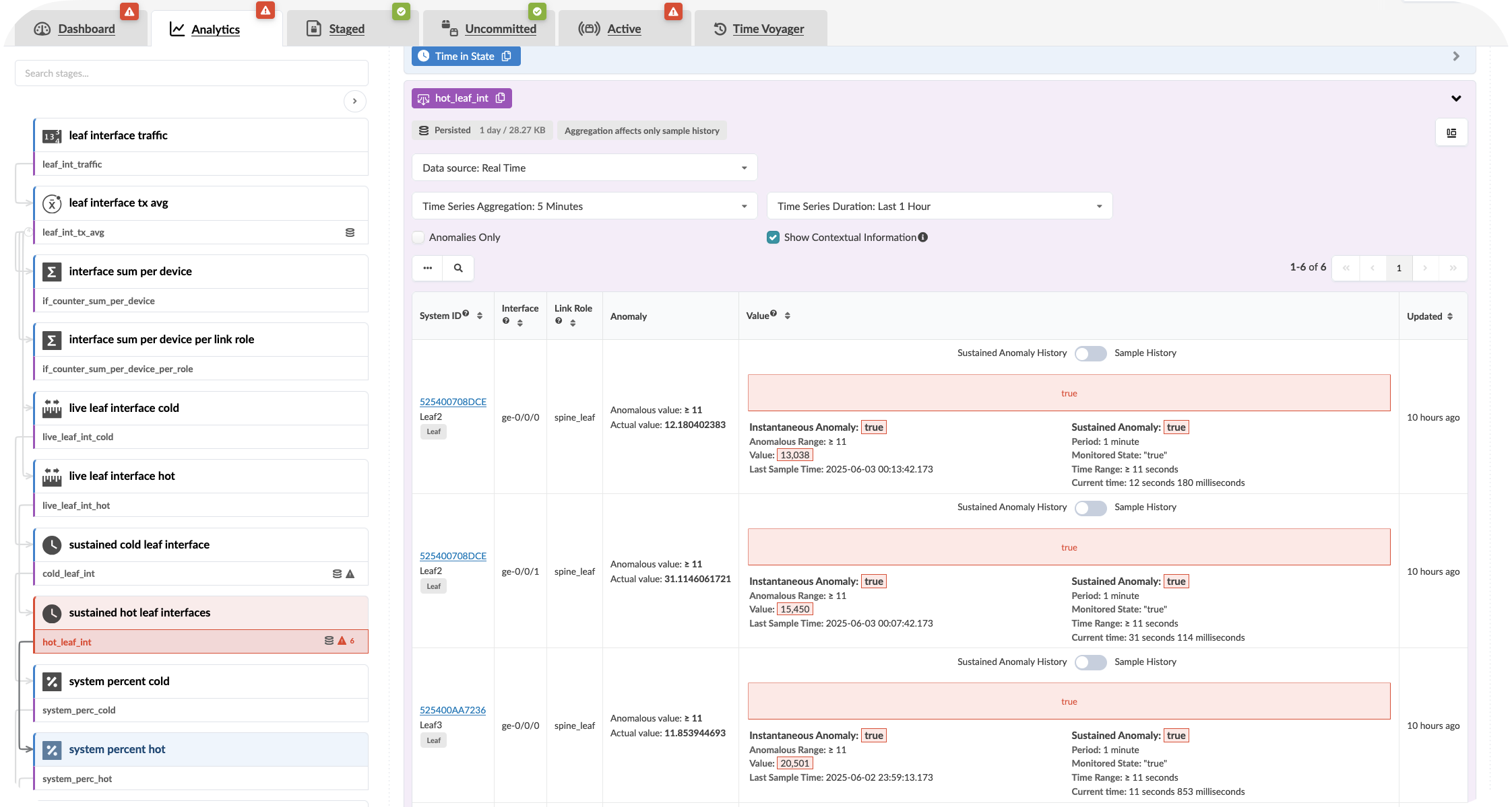 Value point: Apstra distinguishes between expected network behaviour and genuine issues. The system understands your design intent, so it only presents alerts for actual deviations rather than normal operational changes.