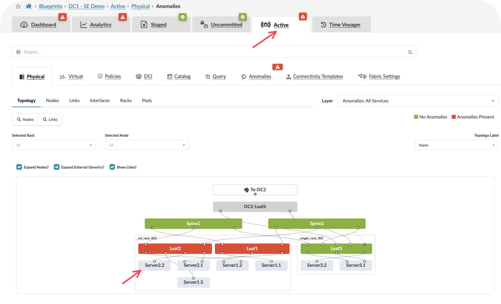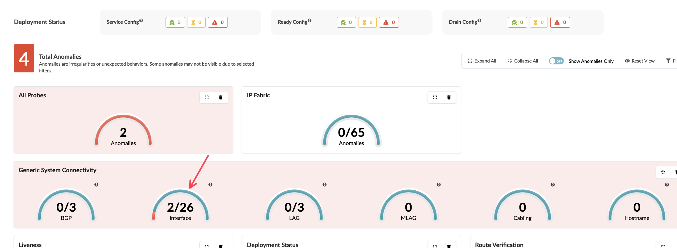 Value point: The main dashboard serves as your single source of truth for fabric health. Rather than monitoring individual devices or services separately, you gain immediate visibility into the overall status of your entire data centre network.