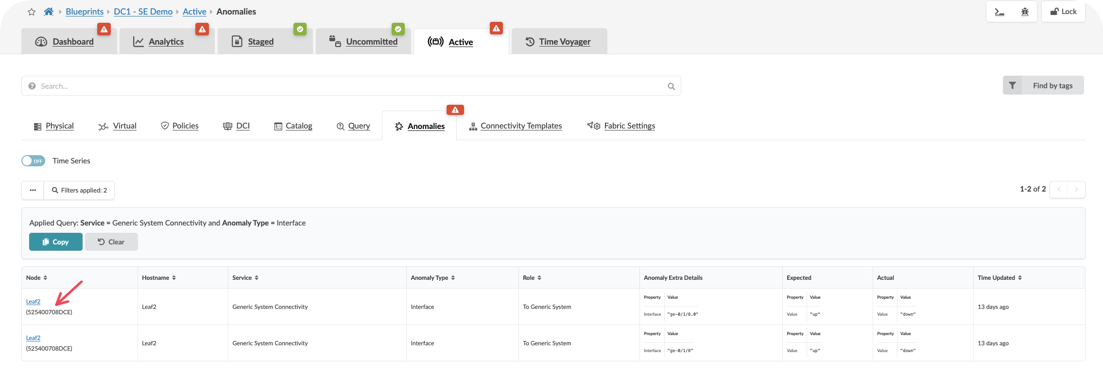 This blueprint provides read-only access to a live Apstra environment with real network traffic. You should expect to see active telemetry data and various alerts or anomalies that demonstrate Apstra’s monitoring capabilities. However, the specific data and alerts visible will depend on current network activity and may vary between demonstration sessions.