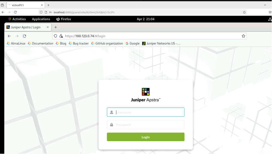 1. Open a Firefox browser and navigate to Apstra UI: https://100.123.0.74 with username: admin and password: Juniper!1